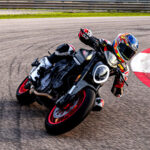 Un cadre en acier reconçu ainsi qu’un bras oscillant et une fourche inférieure en aluminium contribuent de façon importante à la réduction de poids de 5 kg et présentent un équilibre de rigidité révisé de rétroactions et de sensations. La géométrie de la direction a été réglée avec précision, la course de la suspension arrière/avant a été prolongée et la garde au sol a été accrue.