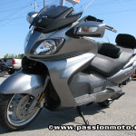 D’une stabilité incroyable le Spyder propose tout de même une conduite sportive, prenez garde au premier virage, les techniques sont différentes et impose une certaine force sur le guidon, quitte à contrebalancé les forces avec une sortie de fesse en virage en contrepoids (comme en motoneige ou en VTT). Aucune vibration au guidon et le moteur fait preuve d’une souplesse jusqu’à la barre des 6000tr/min au-delà de laquelle il devient plus vif. La zone rouge est à 9500tr/min. Sur le modèle en essai(noir mat), mon Spyder avait en option un nouvel échappement plus sport avec une sonorité qui rappelait un twin. Une note supplémentaire aux plaisirs de l’essai en cours. Très pratique en ville, le Spyder descend les rapports tout seul sous les 2000tr/min et permet, de toujours s’arrêter en première vitesse, prêt à repartir. Pour le passager, les grandes poignées offrent un bon maintien, mais on se doit aussi de faire corps avec le pilote et non pas avec la machine, surtout sans dossier, le passager doit donc être actif.