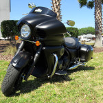 Daytona Beach et le Bike Week sous-entendent Harley, il va sans dire. Il était impératif que j’essaie une vraie, une pure dans la tradition Harley… voir même rétro. Quoi de mieux pour mon premier essai 2013, qu’une Harley-Davidson Forty Eight de 1200 cc. De style rétro-bobber noir et bloc moteur mat, les chromes n’en sont que plus étincelants. Avec son petit compteur qui inclus un petit écran digital proposant l’heure, un trip journalier ou le kilométrage total de la machine, quoi de plus basic. Un retour aux sources, à l’essence même de la moto, presque un voyage dans le temps.