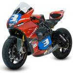 Son tout nouveau moteur Révolution X, un bicylindre en V ouvert à 60°, est refroidi par eau et affiche 56 ch à 8 000 tr/min et un couple de 59 Nm à 4 000 tr/min. Le radiateur bien inséré entre les tubes du cadre à double berceau en acier est revêtu d’un habillage en plastique rappelant quelques vieilles Japonaises aspirantes à un titre semblable.